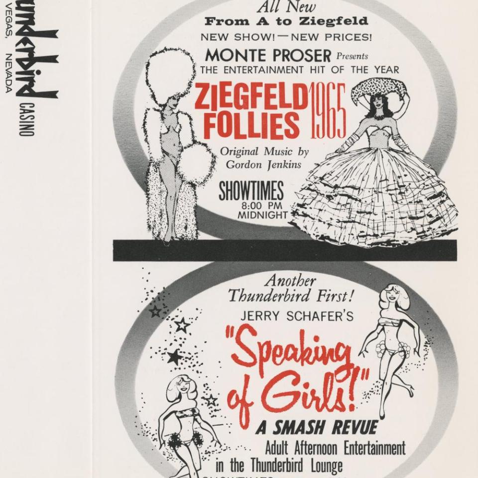 The Thunderbird Hotel Records (MS-00180) are comprised of material that documents the work of this Las Vegas, Nevada hotel's entertainment department from 1964 to 1973. The records consist of photographs, memos, newspaper clippings, and publicity materials.