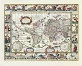 In 1635 he published (together with his son Johan) the first two volumes of his "Le Théatre du Monde ou Nouvel Atlas" which over the years grew to 12 volumes. Blaeu depicted in about 600 maps the entire known world as best as possible regarding cartographic exactness to which he added rich ornamental cartouches and heraldic highlights.